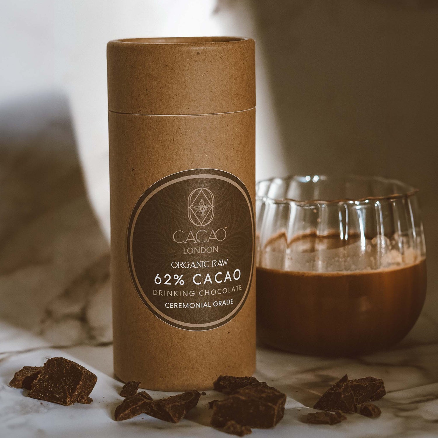 The hand-crafted cacao pieces require chopping and stirring into warm milk, transforming your preparation into a mindful and indulgent ritual.